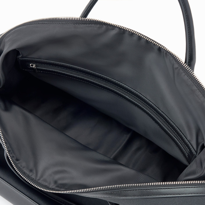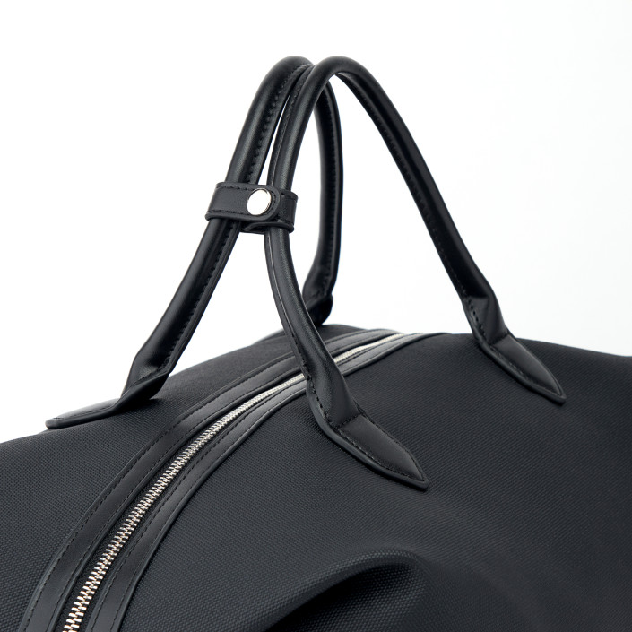 고급스러운 블랙 컬러와 가죽 소재로 제작된 보스턴 백입니다. 넉넉한 수납공간과 내부 포켓으로 실용성을 더했으며, 깔끔하고 간결한 디자인입니다.